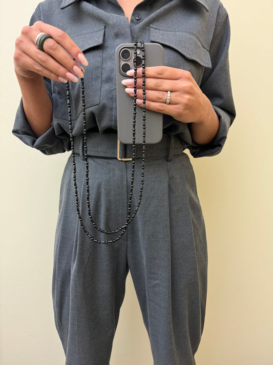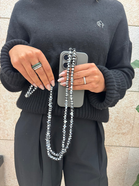 black teardrop & gunmetal grey lightweight phonestrap