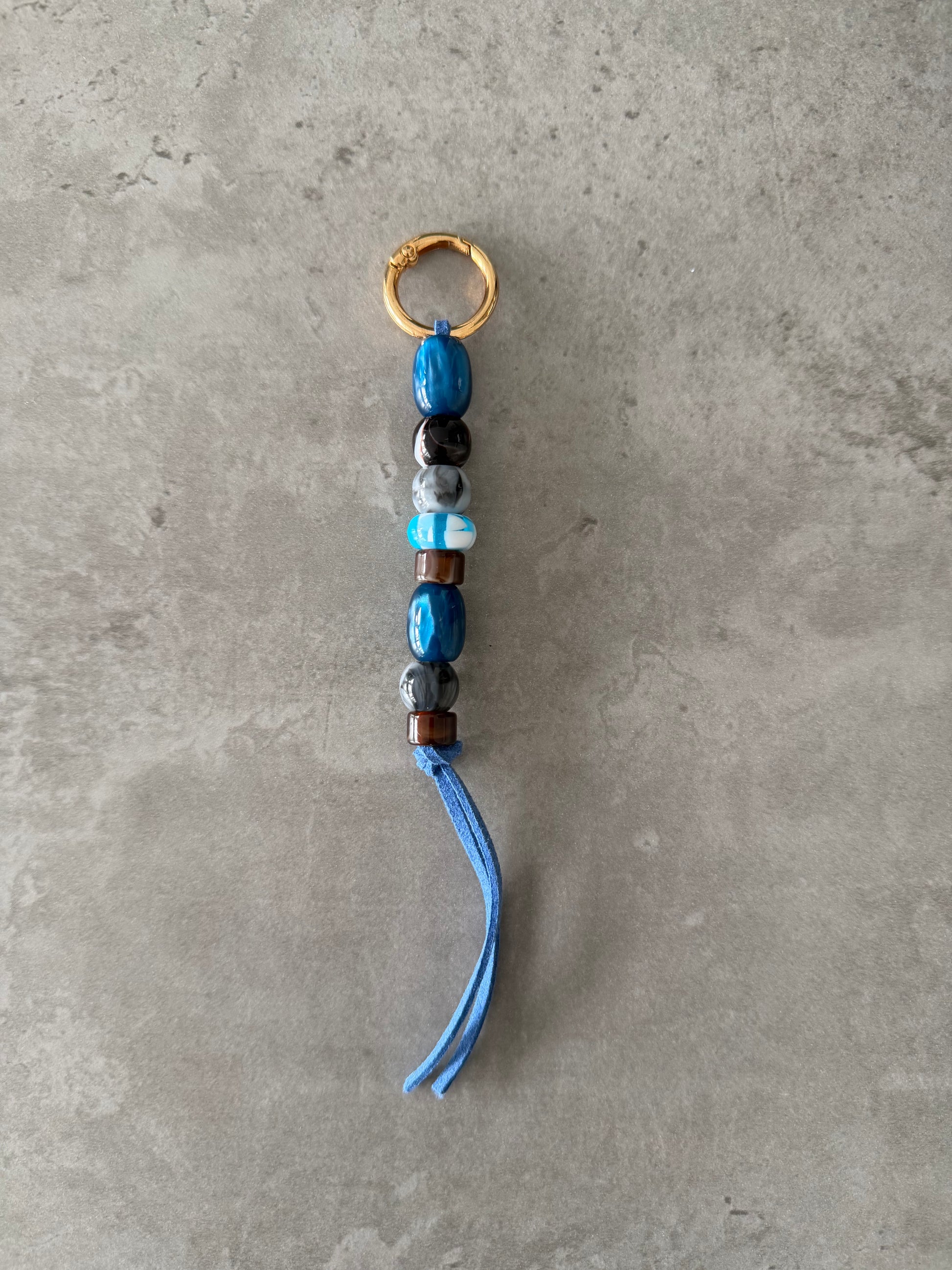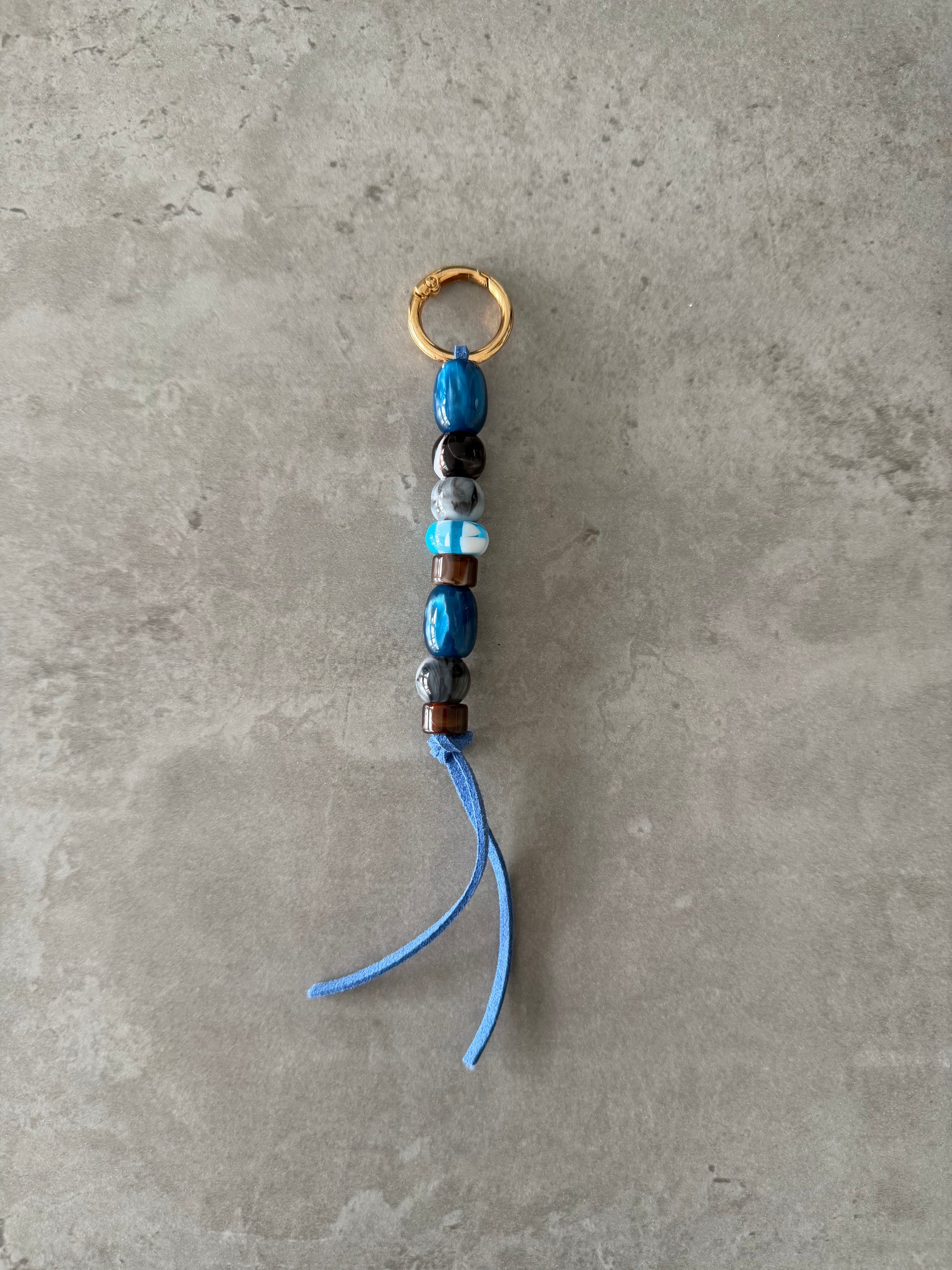 bag/key charm - blue brown grey